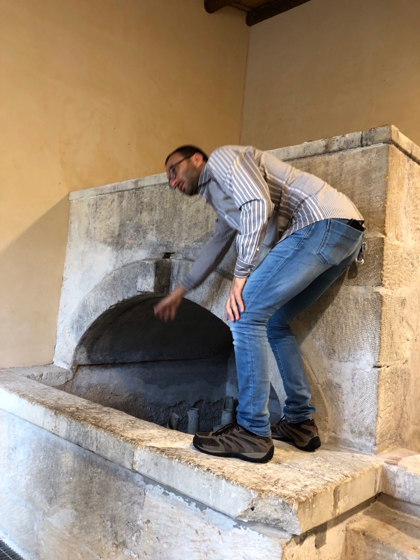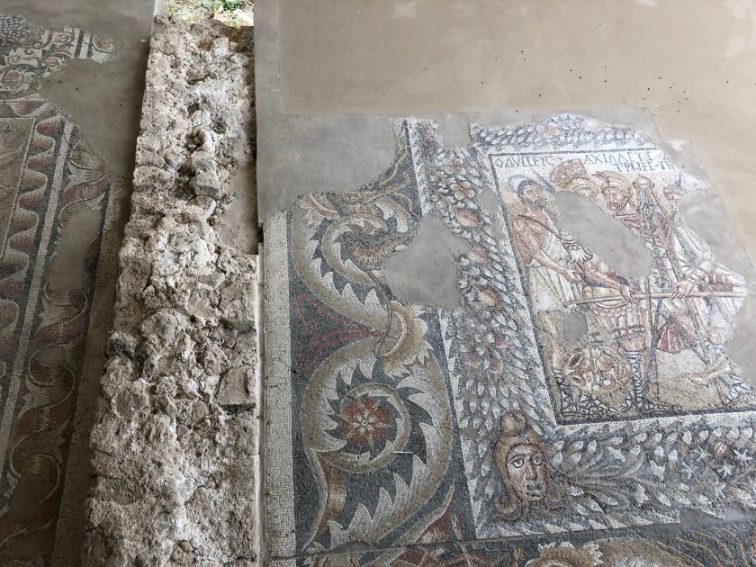 On October 9, we drove to Tellaro to meet our private guide, Alessandro Rustico from Uncovered Sicily. We met at the Roman villa, a mini- version of the Villa Romana Casale in Piazza Armerina. The remnants of this villa are much smaller, with foundations and the remnants of mosaic floors in three room and a corridor. The villa was owned by a Roman senator (rather than an emperor like the other one) and was built in the 3rd century AD in valley of Noto. The area was important for the cultivation of wheat. Alessandro has a dynamic personality and really brought to life the historic and archeological significance of what we were seeing.