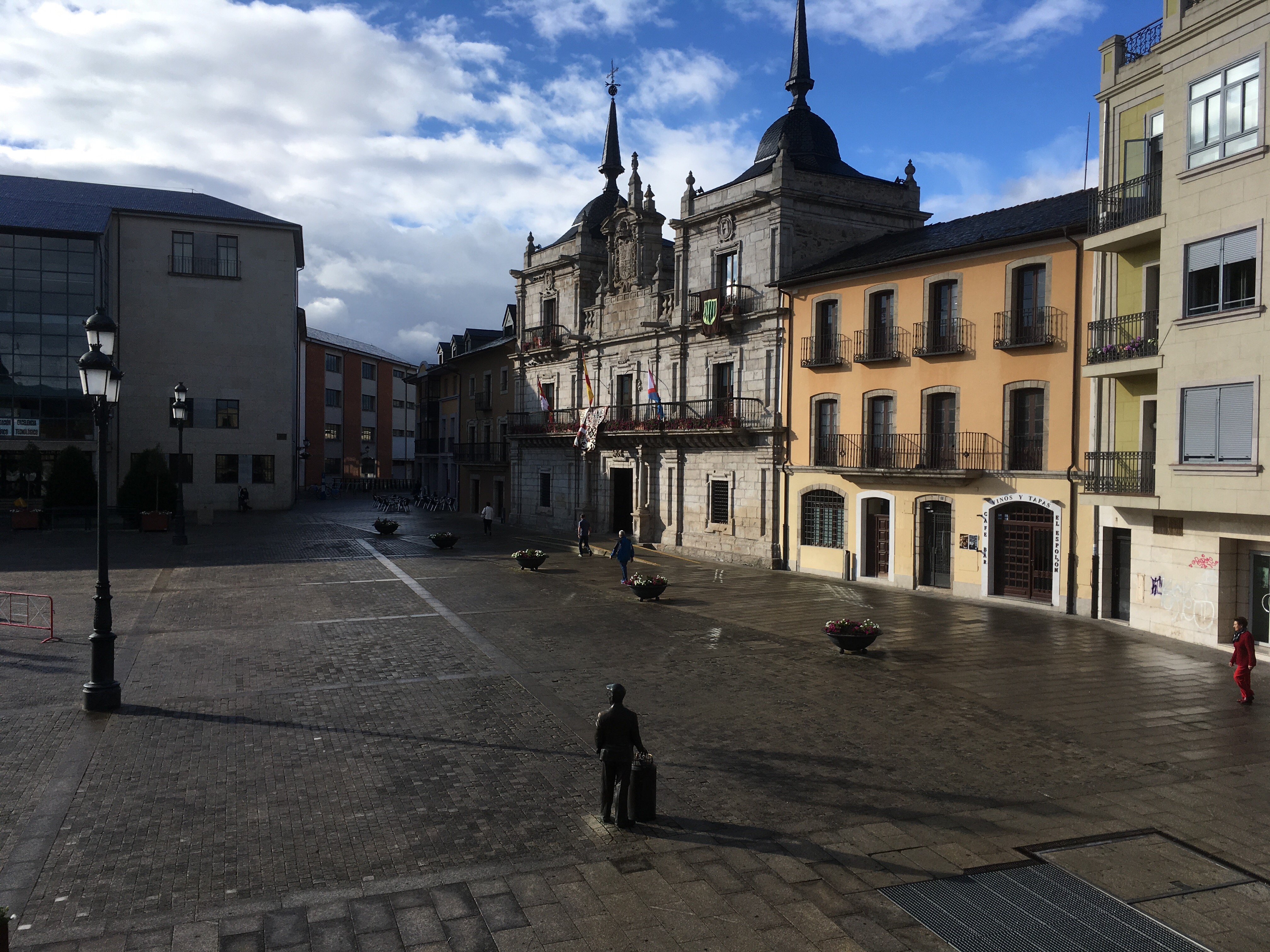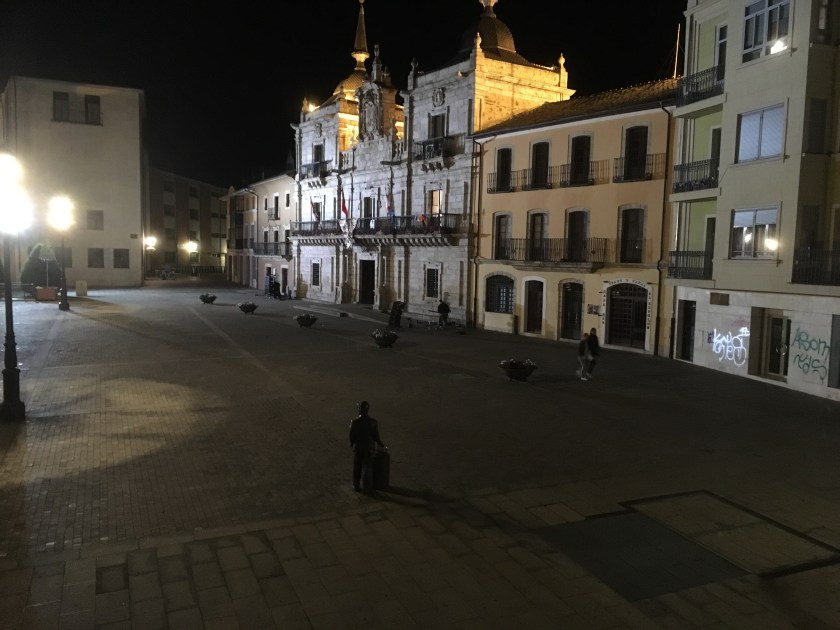 Since we skipped the reportedly pitiful breakfast at the casa rural, we got an early start – on the Camino by 7:30. Of course we needed a café con leche to get the motor running so we stopped at the first opportunity, in Linares at a bar that was just opening for business. And they had wifi, so I could post some pictures on Facebook.