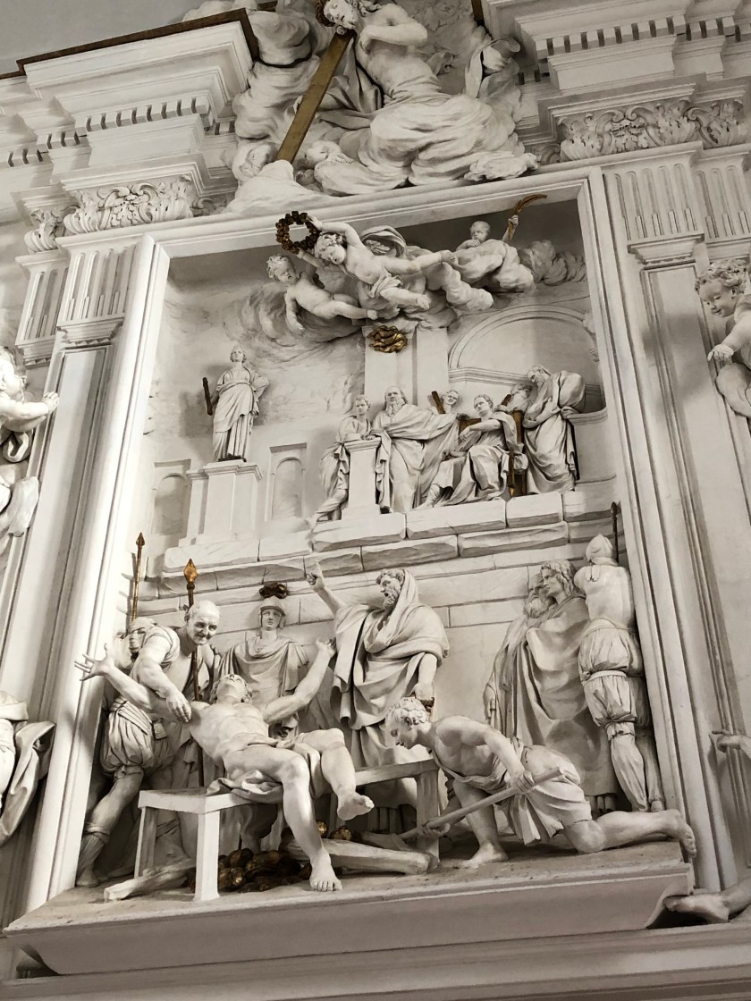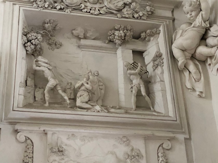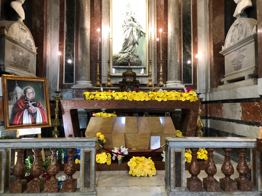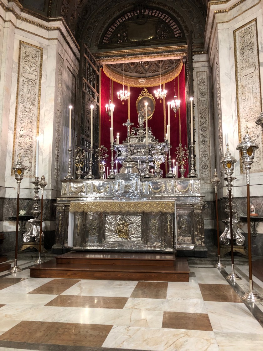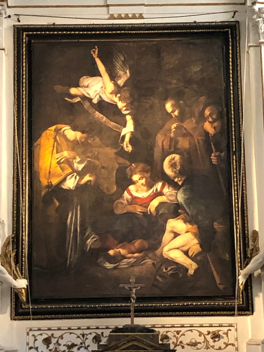However it’s true fame ( or infamy) comes from the painting of the Nativity by Caravaggio behind the altar! The real painting was stolen by the Mafia in 1969 and its whereabouts are still unknown and the “painting ” behind the altar is an imitation!