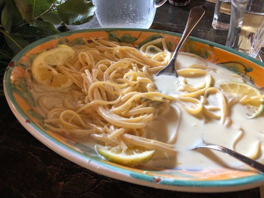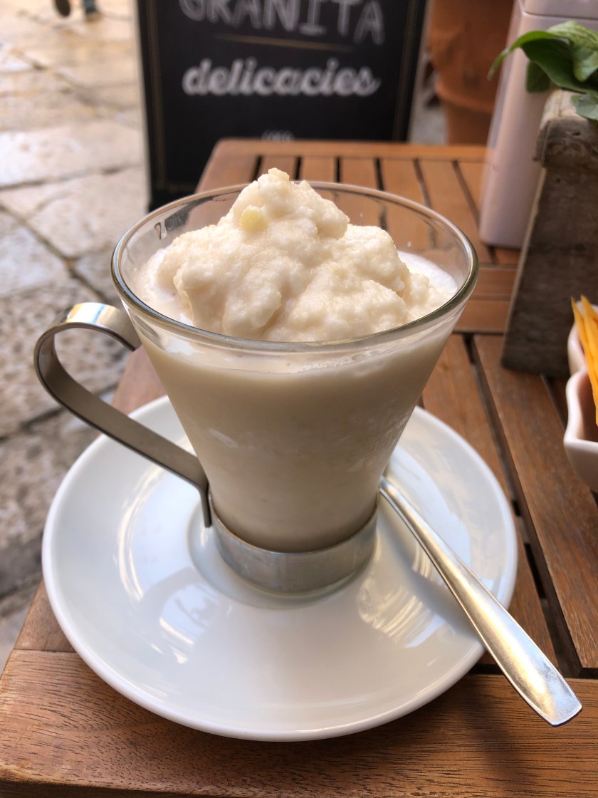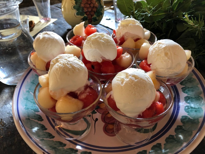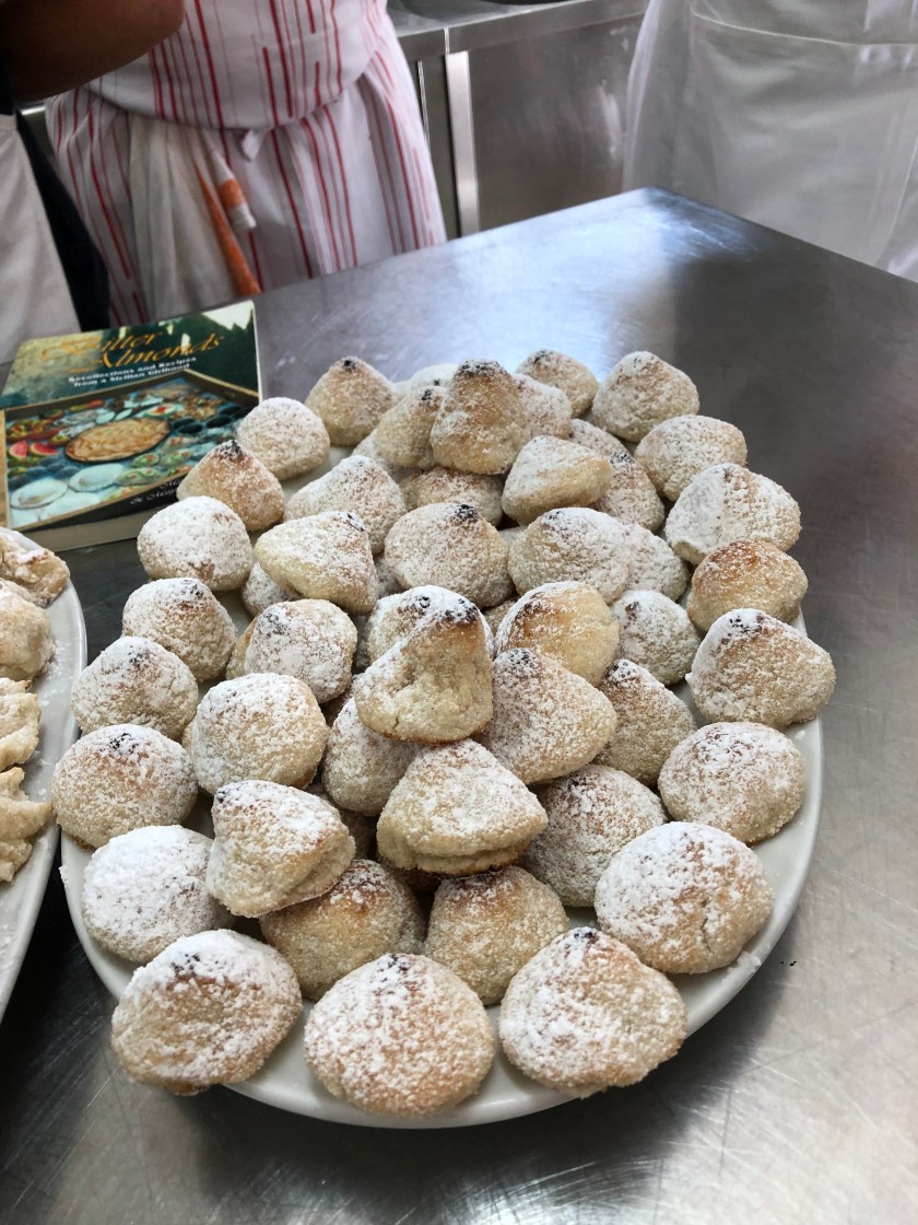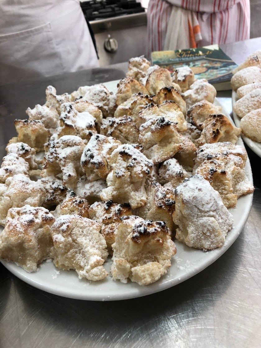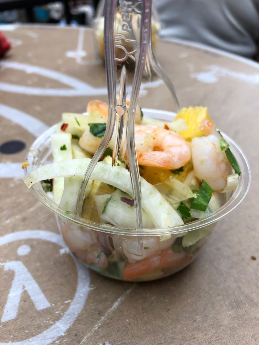 We sampled sun dried tomatoes, artichokes roasted over coals, prickly pears, shrimp salad with orange and fennel, arancini, siciliani (like a calzone stuffed with cheese, anchovies and olives), cipollini (puff pastry filled with onions, tomatoes, cheese), and granita with brioche.