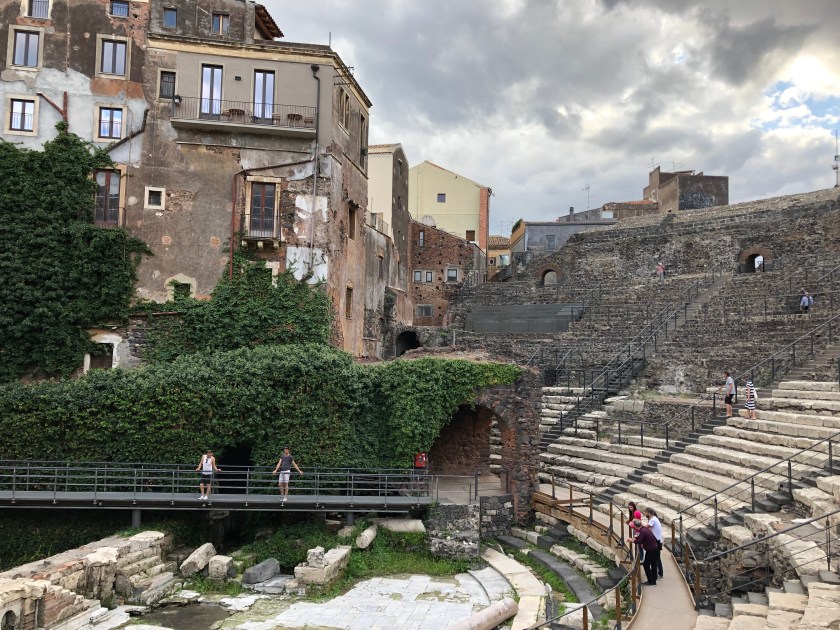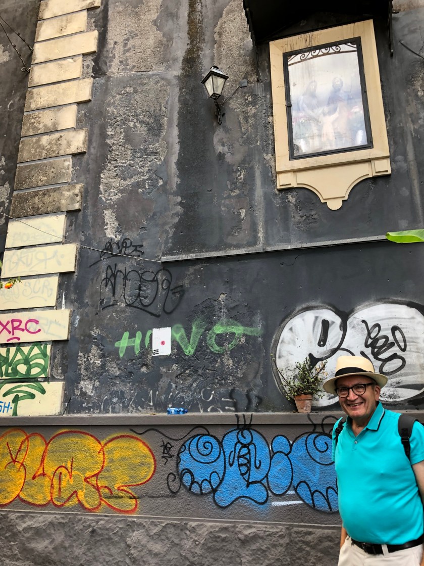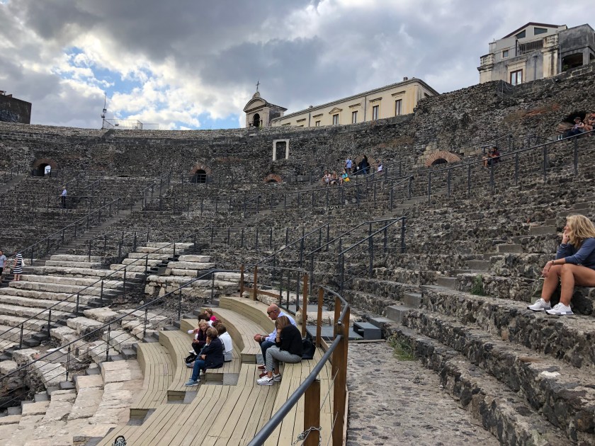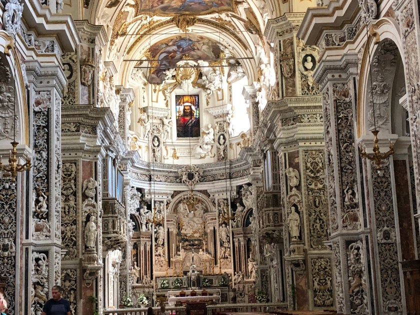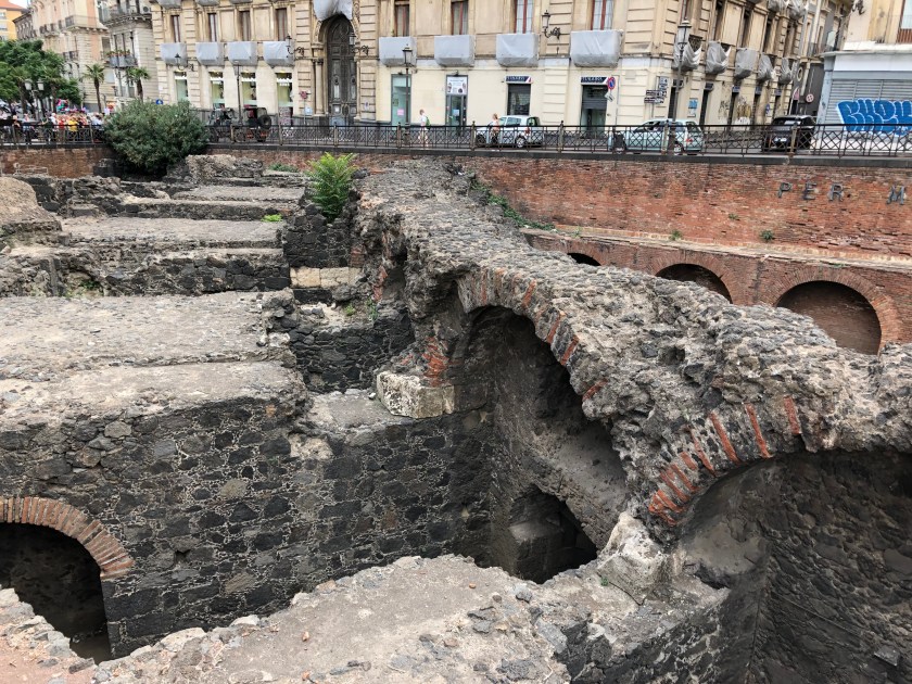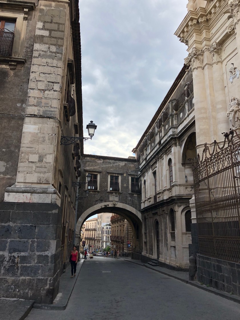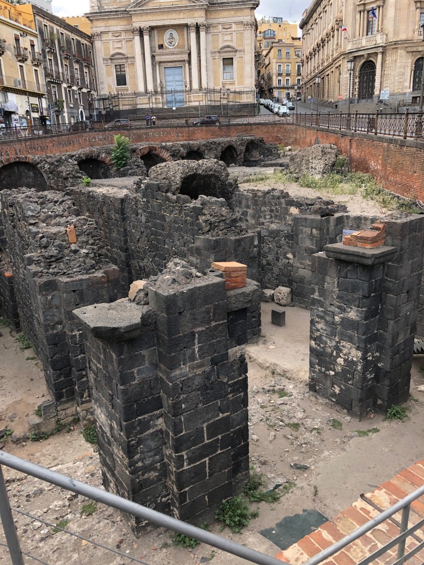 After we walked through the market, we also saw an underground volcanic cave (now a restaurant), a castle built by Frederic II in the 12th century and walked up the via Crociferi to see the five churches along a 500 meter stretch.