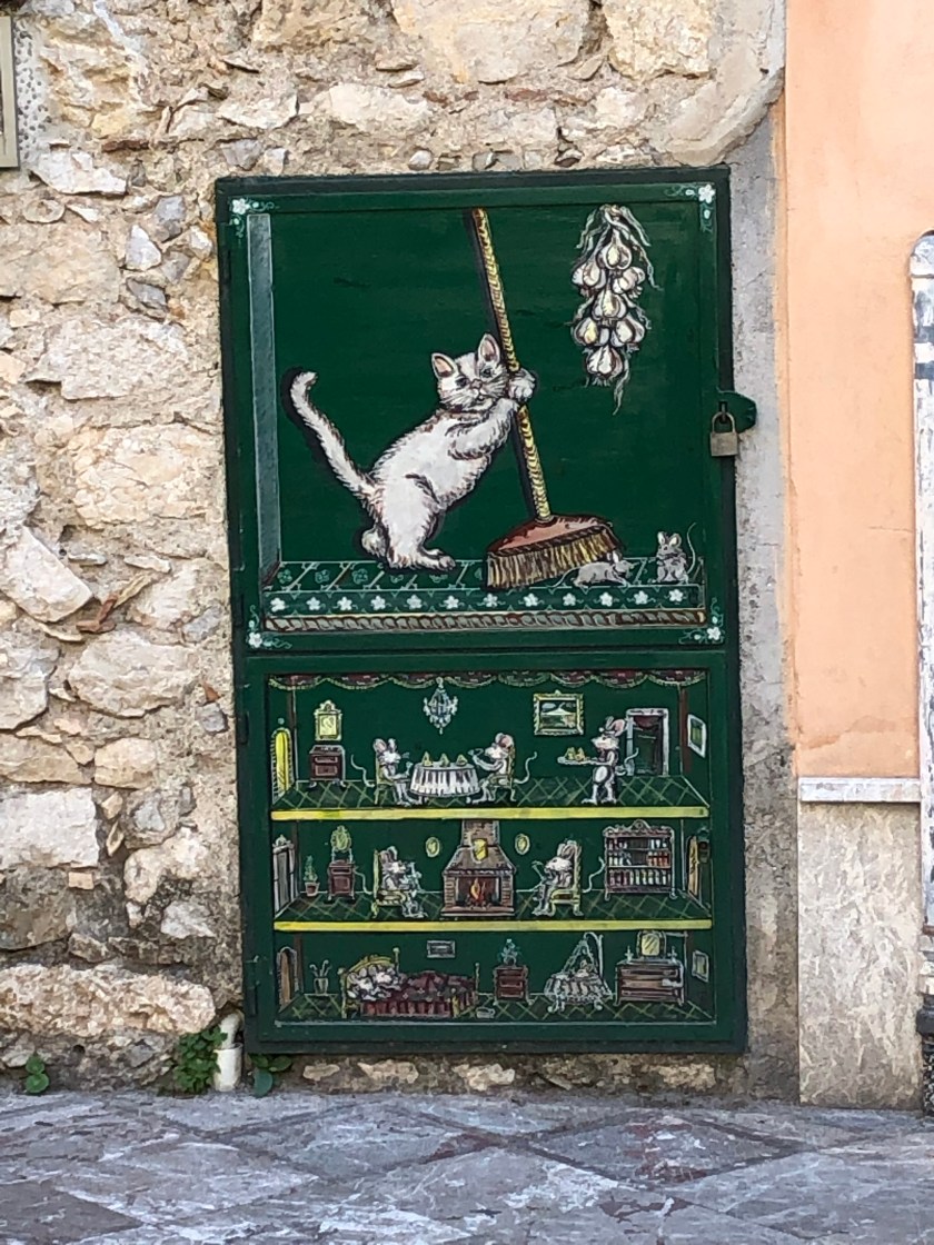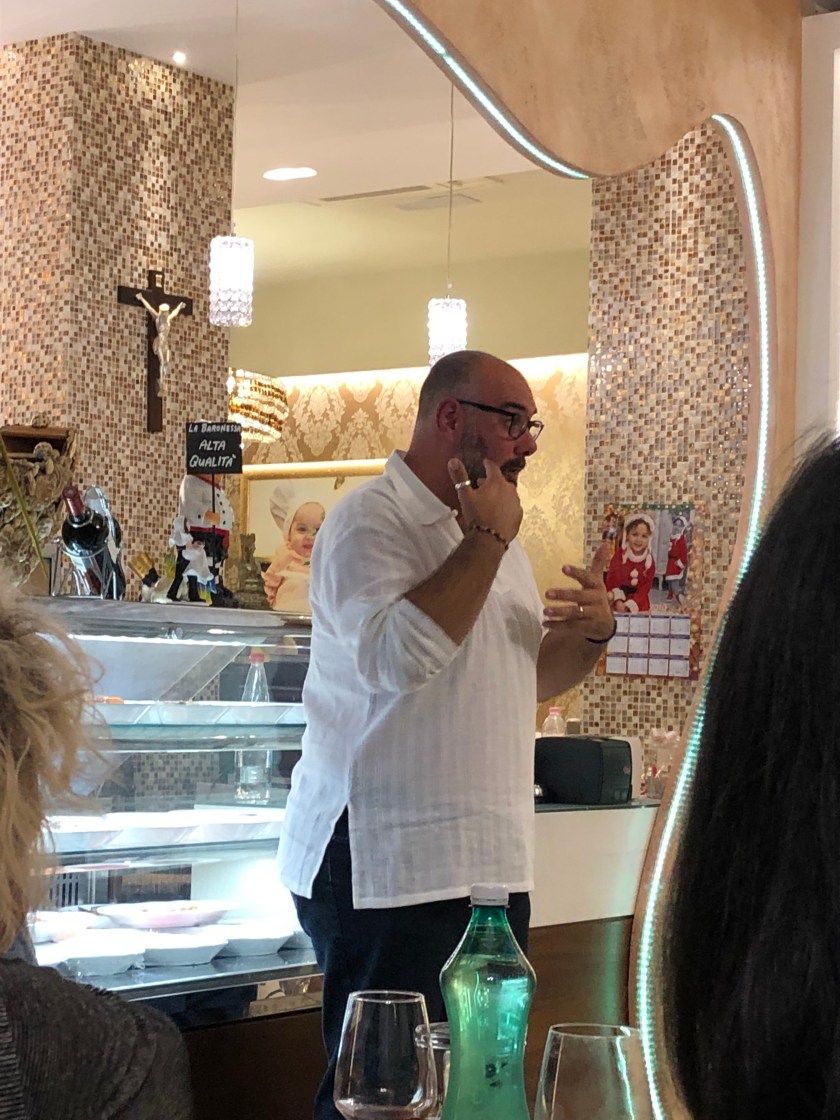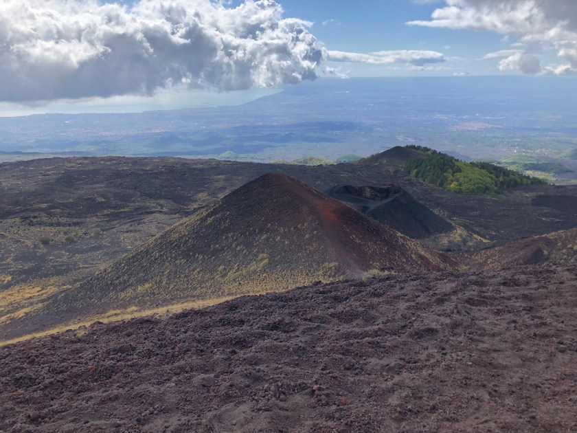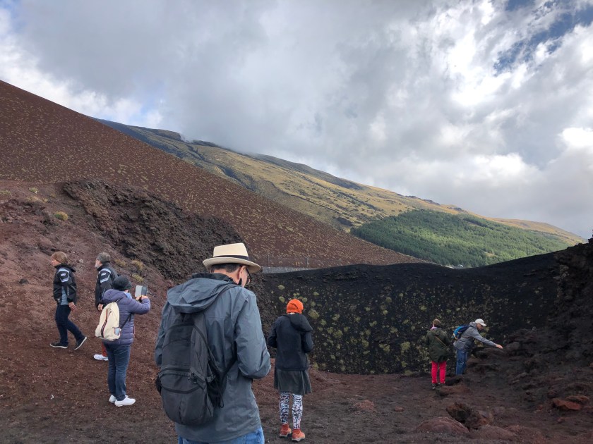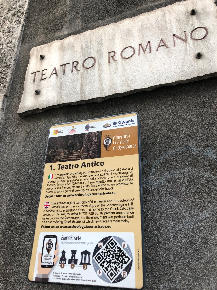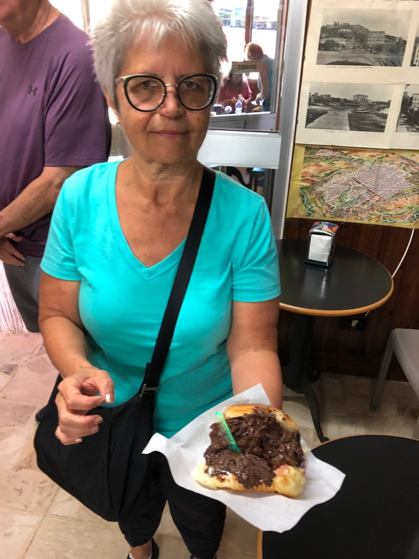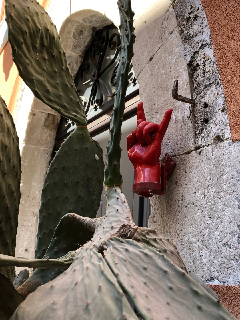 After 21 days in Italy, today (Monday) is the first day with any appreciable rain! We did have about two hours of a rainstorm in Lecce, but we were under cover savoring an Aperol spritz and there was about a fifteen minute period of light drizzle one morning in Ortygia, but that really didn’t count as much as it didn’t impact our activity. Today’s forecast was for severe thunderstorms with possible flooding and hail so I was apprehensive that we would get through the day without getting drenched, but the rain held off until about 4 p.m., well after we completed our morning food tour in Catania. I booked the tour with Streaty, the same folks that run the food tour we took in Palermo. The morning was overcast and cool but warm enough to forego a jacket or sweater. We made the 15 minute walk down to Piazza Duomo (our meeting point) and ran into a demonstration- a large group of elementary school age children chanting and holding up signs. Apparently their school has been without electricity for several days and the local governmental authorities have not been responsive.