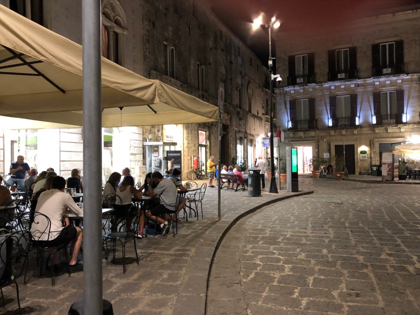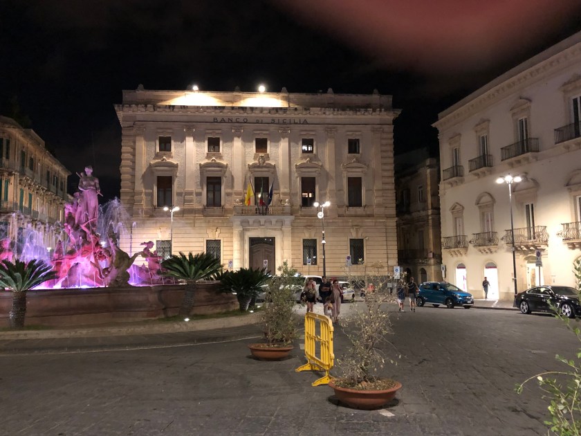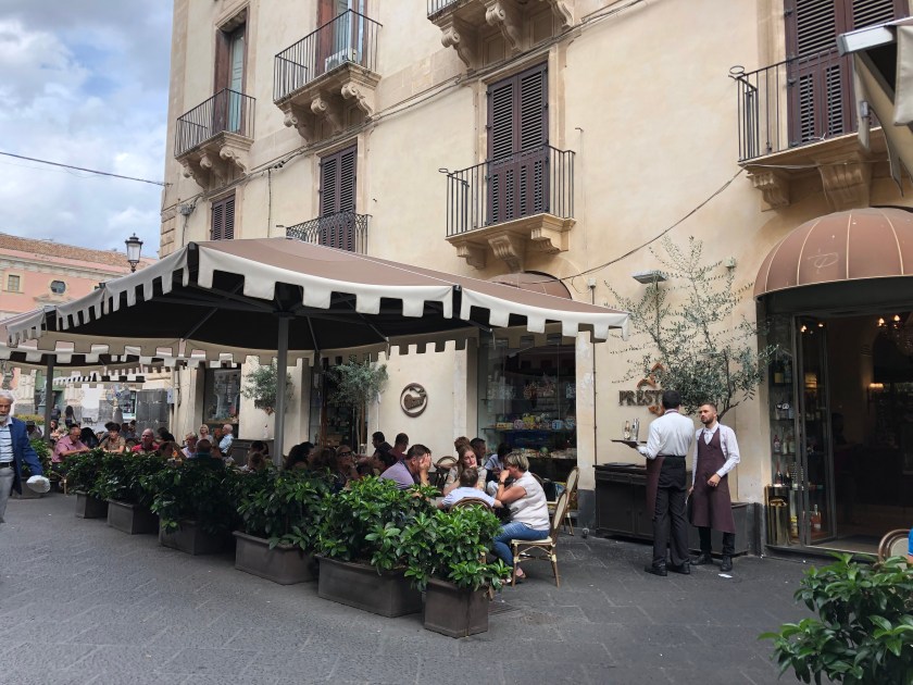 After the tour, we strolled through Villa Bellini, the “Central Park” of Catania and then returned to the hotel to chill out. We skipped dinner tonight, opting for some wine and appetizers at a wine bar.