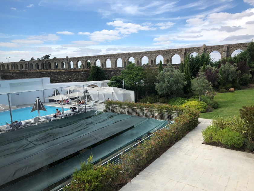 We arrived at our hotel, the Mar d’Ar, located just inside the old town, at around 10:30 am. This five-star hotel opened in 2008 and was previously a 16th century palace. The remodel turned it into a sleek modernist structure with a portion of the town’s medieval aqueduct in its garden.