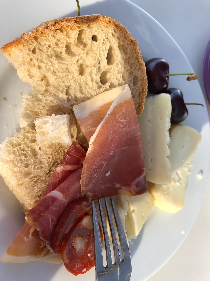 We ended the evening at our hotel with a happy hour of local wines, bread, cheeses and cured meats, fresh cherries and figs. No need for dinner tonight!