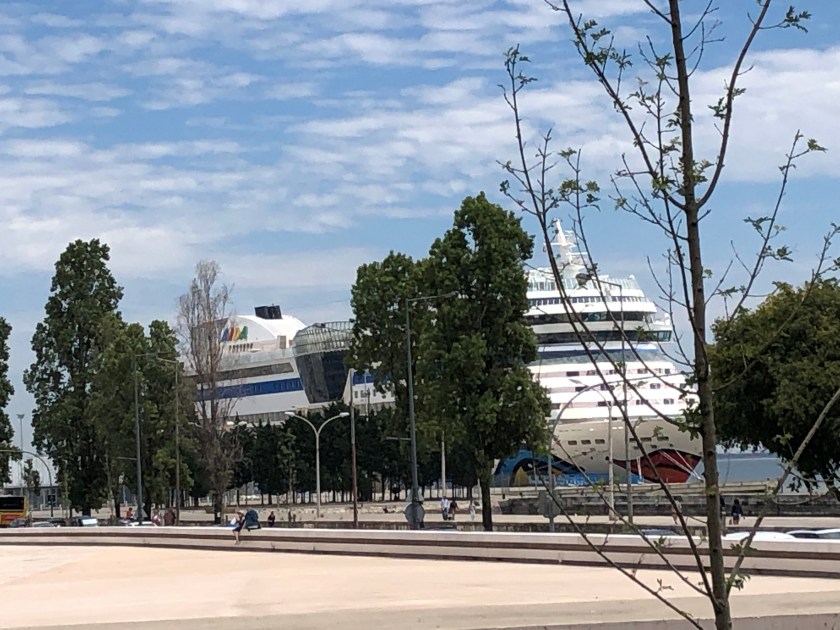 Since we still had quite a bit of time to kill and we didn’t want to walk around, we stayed on the bus for a second round. The most exciting part of the ride was dodging the branches of the overhead trees! We did get to see a cruise ship (the Aida) in port